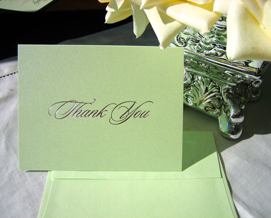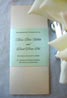 Morning Dew is a breath of fresh air!  Adorned with a wrinkle-resistant ivory satin bow, this invitation consists of a green vellum jacket enveloping a pale green shimmering printed card inside.  See the text through the opaque vellum!  Stunning!  Approximately 5" x 7".