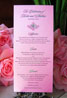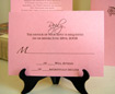 Strawberry Swirl makes a statment!  The outside of the shimmering brown pocket has a monogram tag printed on shimmering pink card.  The inside contains your invitation printed on pink cards and the pocket contains all your other essential details.  Approximately 5" x 7".
