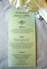 Refreshingly modern, The Meadow is a single, spring green shimmering cardstock layer.  A printed border gives the illusion of additional layers. Coordinating program, thank-you cards, etc. Square Invitation is approx. 6.25" x 6.25".  Brown printing shown.